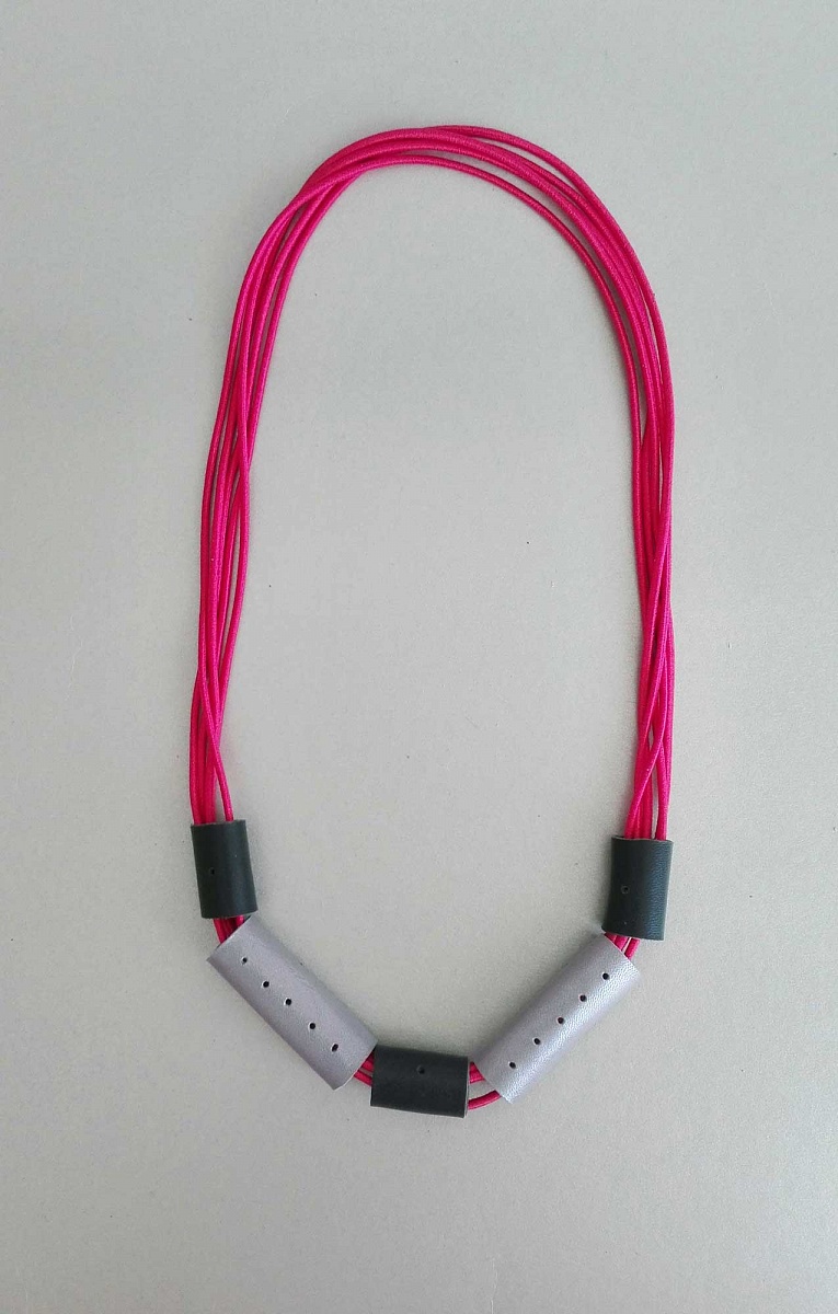 Šperk je vyroben z velmi kvalitní koziny, jemně perforovaný. Jednotlivé dílky jsou navlečeny na kloboukových gumách a průměru 2 mm.