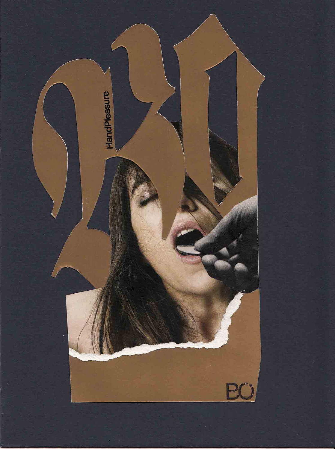 Hand Pleasure je pokračováním pubertální potřeby se vyjadřovat nahlas a všem na očích. Možná, že už křičíme méně, ale touha podepisovat se pod své věci nevyprchala. Tagy na zdech dnes střídá logo Hand Pleasure, ale pocit splikleneckého vzrušení zůstává dál. Názvem Hand Pleasure se hlásíme k oslavě fantazie a manuálního umu. Žádná z koláží není digitálně upravena, všechny jsou vytvořeny ručním stříháním, skládáním a lepením. Hand Pleasure je mimo jiné značka triček, která je postavena na unikátním designu papírových koláží, pečlivého sítotisku a vzývání kultu trička.