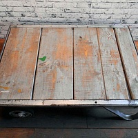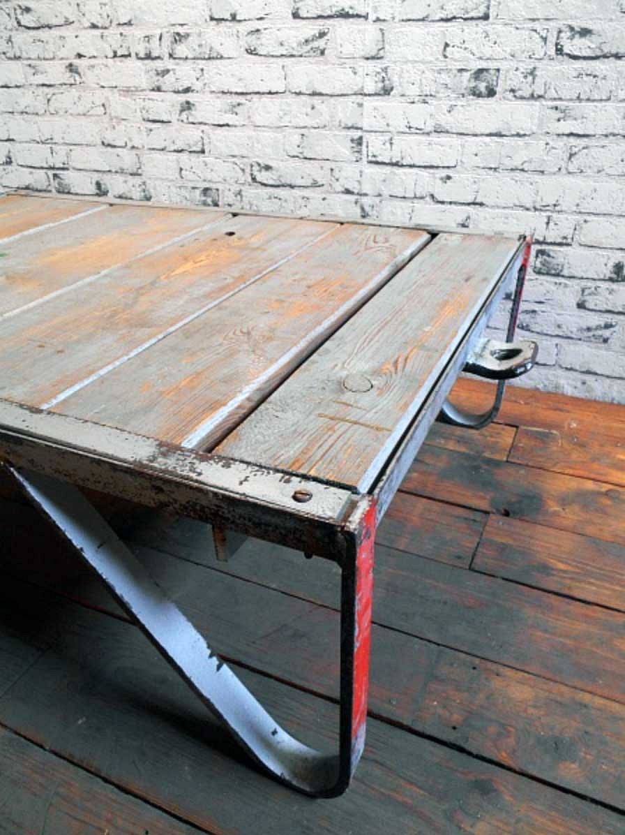 Industriální konferenční stolek, původní konstrukce, restaurovaný uměleckým truhlářem, rozměry 106cm x 70cm x výška 32 cm.